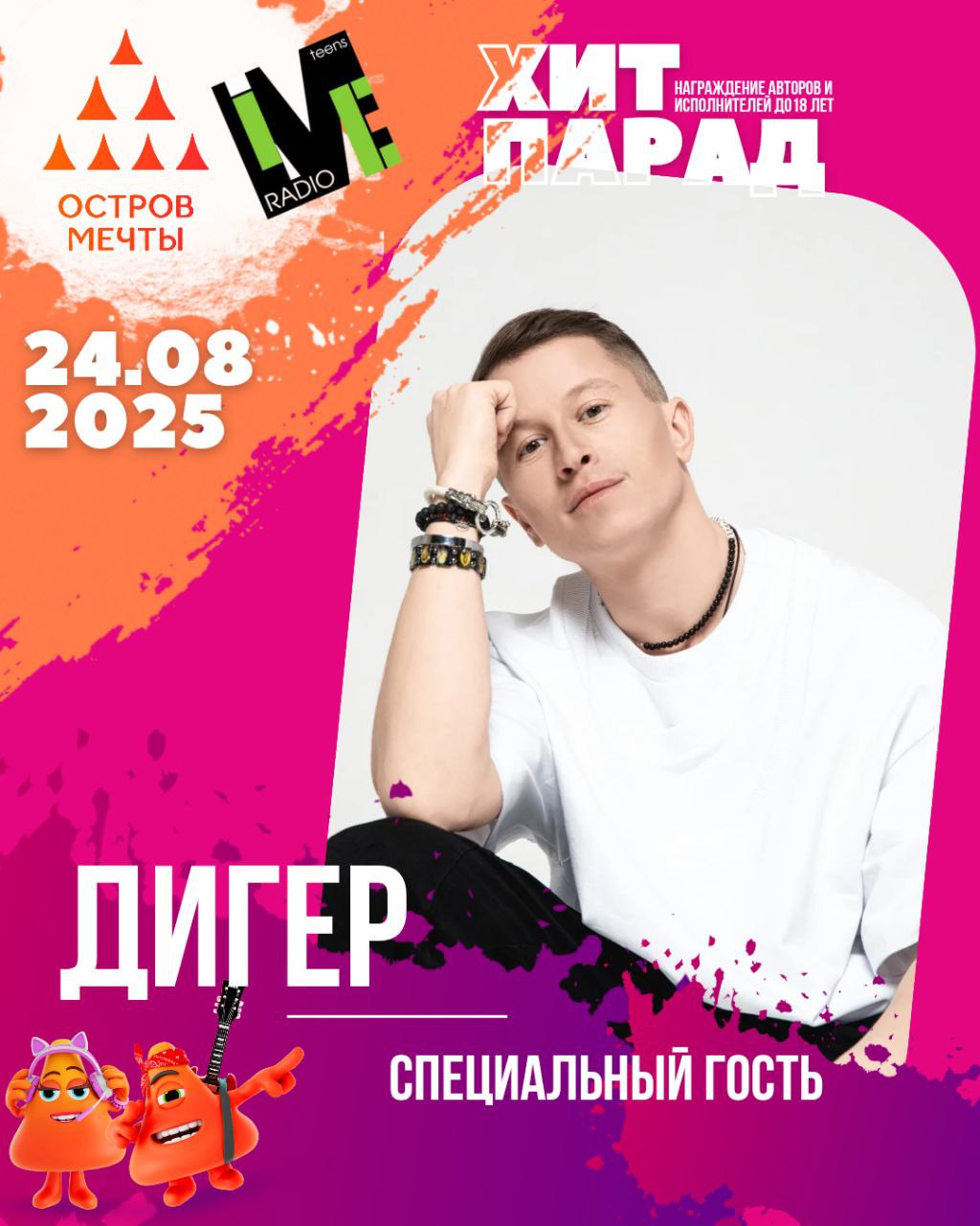 🤘Ждем встречи со СПЕЦИАЛЬНЫМ ГОСТЕМ гала - концерта радио "LIME TEENS"! 🤘🔝Поздравить и поддержать фаворитов ХИТ-ПАРАДА приедет автор и исполнитель собственных песен - певец ДИГЕР! 🔥🔥
